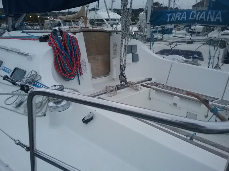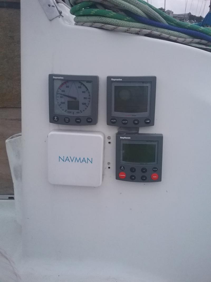 High tech racing sails, two spinnakers, cruising sails, Furlex furling system. Volvo 18hp twin cylinder diesel engine. Auto helm. NAVMAN chart plotter, auto helm wind and depth instruments, self tailing winches, VHF radio, FM radio & CD. 220V fridge and cool box. 3 ring gas cooker with oven. In current use for club racing and cruising. Meticulously maintained. Owner downsizing, would consider trade for 24ft club racer.
